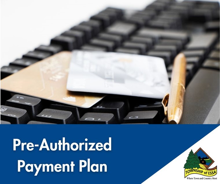 You can pay your property tax and water bills by enrolling in a Pre-Authorized Payment Plan. By completing the application form, you authorize the Township of Essa to withdraw the amount owing directly from your bank account and apply it to your account.
