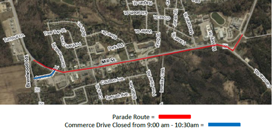 The closure will begin: November 22nd, 2025 (approximately 9:00 am to 12:30 pm) Parade begins from Brentwood Road to the Angus Recreation Center.